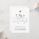 Esposa y marido de mediana edad están sentados en la orilla del mar sosteniendo vasos de vino en sus manos. Están viendo la puesta de sol, y el sol toma la forma de un corazón brillante para este feliz momento de su 40 aniversario de boda. El diseño de la tarjeta está hecho en una técnica de escritura y de caricatura de tinta muy simple con los tres puntos rojos: corazón y dos vasos de vino. ¡Gran tarjeta para el aniversario del Boda Ruby! Puede personalizar fácilmente el texto (saludos y nombres) en la parte inferior de la tarjeta utilizando herramientas de personalización de Zazzle.