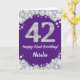 Feliz 42º cumpleaños, tarjeta Purpurina morada y p