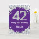 Feliz 42º cumpleaños, tarjeta Purpurina púrpura y plateada con nombre personalizado. Para una mayor personalización, haga clic en el botón "Personalizar" y utilice nuestra herramienta de diseño para modificar esta plantilla.