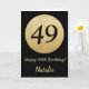 Feliz 49 cumpleaños, tarjeta Purpurina negra y dor