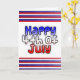 Feliz 4 de julio Día de la Independencia, tarjeta roja blanca y azul.