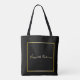 Feliz 50° Aniversario de la bolsa de tote Elegant Gold texto Feliz 50 Aniversario de la bolsa de tote sobre fondo negro. Llénalo con tarjetas y más para la pareja celebrada. Personaliza con nombres y fechas. Por celeste@khoncepts.com #blackandgold #50thyear (50 años)