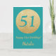 Feliz 51ª Tarjeta Purpurina Verde azulada y Gold con nombre personalizado. Para una mayor personalización, haga clic en el botón "Personalizar" y utilice nuestra herramienta de diseño para modificar esta plantilla.