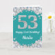 Feliz 53 cumpleaños, Verde azulada tarjeta de Purpurina Turquesa Aqua y Plata con nombre personalizado. Para una mayor personalización, haga clic en el botón "Personalizar" y utilice nuestra herramienta de diseño para modificar esta plantilla.