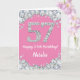 Feliz 57 cumpleaños, tarjeta de Purpurina rosa y p