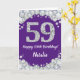 Feliz 59º Cumpleaños Tarjeta Purpurina Púrpura y Plata con nombre personalizado. Para una mayor personalización, haga clic en el botón "Personalizar" y utilice nuestra herramienta de diseño para modificar esta plantilla.