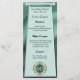 Un menú elegante con un patrón verde y Relieve metalizado y tu número de cumpleaños único en purpurina y oro.