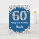 Feliz 60 cumpleaños, tarjeta Purpurina azul y plateado con nombre personalizado. Para una mayor personalización, haga clic en el botón "Personalizar" y utilice nuestra herramienta de diseño para modificar esta plantilla.