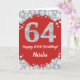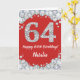 Feliz 64º cumpleaños Tarjeta Purpurina roja y plat