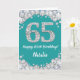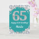Feliz 65º cumpleaños, Verde azulada tarjeta de Purpurina Turquesa Aqua y Plata con nombre personalizado. Para una mayor personalización, haga clic en el botón "Personalizar" y utilice nuestra herramienta de diseño para modificar esta plantilla.