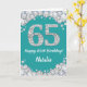 Feliz 65º cumpleaños, tarjeta Purpurina Verde azul
