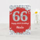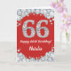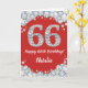 Feliz 66º cumpleaños Tarjeta Purpurina roja y plat