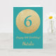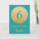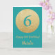 Feliz 6º Cumpleaños Verde azulado y Tarjeta Purpurina de oro con nombre personalizado. Para una mayor personalización, haga clic en el botón "Personalizar" y utilice nuestra herramienta de diseño para modificar esta plantilla.
