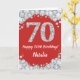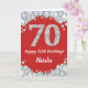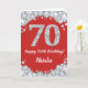 Feliz 70 cumpleaños, tarjeta de Purpurina roja y plateada con nombre personalizado. Para una mayor personalización, haga clic en el botón "Personalizar" y utilice nuestra herramienta de diseño para modificar esta plantilla.