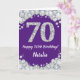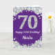 Feliz 70 cumpleaños, tarjeta Purpurina morada y pl