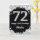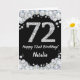 Feliz 72º cumpleaños, tarjeta Purpurina negra y plateada con nombre personalizado. Para una mayor personalización, haga clic en el botón "Personalizar" y utilice nuestra herramienta de diseño para modificar esta plantilla.