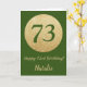Feliz 73 cumpleaños, tarjeta verde y Purpurina de oro con nombre personalizado.
