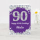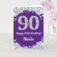 Feliz 90 cumpleaños, tarjeta Purpurina morada y pl