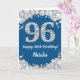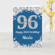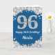 Feliz 96º cumpleaños tarjeta Purpurina azul y plat