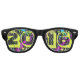 Celebra un fiesta de vísperas de año nuevo con estas divertidas y festivas gafas de sol. Dígitos grandes 2 0 1 6 en la parte delantera y fondo negro sólido con esquirlas fluorescentes brillantes de pintura en verde neón, rosa caliente, amarillo brillante y verde vibrante.