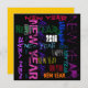 Diseñado para 8 letras : AÑO NUEVO (7 + espacio) con año+ feliz. Diseño en una invitación cuadrada de tarjeta plana con fondo negro (delante) y fondo amarillo en la parte posterior. Puede cambiar fácilmente el color de fondo y el texto (color, fuente, tamaño y posición) haciendo clic en el botón personalizar o personalizar. Tarjeta de saludo, servilleta de papel, placa de papel, bolso de regalo y más... Alegría y un saludo no convencional para Feliz Año Nuevo 2019.