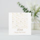 Tarjeta de Felicitación 20XX ¡Feliz Año Nuevo! & Feliz Navidad. Deseos de Tarjeta de Felicitación de Fiesta de Nochevieja decorada con magia navideña con adornos dorados, patrón de elementos de regalos de vacaciones de invierno, muñeco de nieve, Santa, árbol de Navidad, bola de Navidad, reno, copos de nieve, estrellas de Navidad, regalos y más símbolos festivos. Diseño gráfico original de moda para invitaciones y papelería, tarjetas de felicitación, vacaciones y temporada, diseño elegante en papel blanco de Navidad con plantilla de texto. Personalízalas añadiendo tu texto de deseos, decoración gráfica festiva en dos caras.