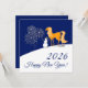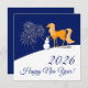 Esta feliz tarjeta de vacaciones de Año Nuevo 2026 cuenta con un elegante ilustracion de caballos y hombres de nieve viendo fuegos artificiales. 2026 es el año del caballo de bomberos 2026 en el ciclo del zodiaco lunar chino. Puede editar texto fácilmente con las herramientas en línea de Zazzle.