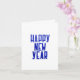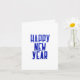 Texto hecho a mano Feliz Año Nuevo con tarjeta azul de saludo en color ultramarino. Pintura de los deseos de Año Nuevo Azul para celebración, creada por el artista.