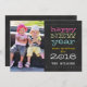 Tarjeta de felicitación del día de fiesta de la Feliz Año Nuevo de la pizarra con su foto de familia preferida. ELKE CLARKE© disponible en www.zazzle.com/monogramgallery. Envíe sus saludos de los Años Nuevos a sus amigos y familia usando esta tarjeta del día de fiesta de la diversión con la foto. "Recuerdos de la Feliz Año Nuevo para 2016" en tipografía caprichosa de la diversión. Usted puede "modificarla para requisitos particulares" y cambiar el color de las palabras para hacer juego su foto. Cree su propio único de una tarjeta buena del día de fiesta. Añada su propia foto, saludando el mensaje y texto en el frente de la tarjeta, tal como su apellido, o su inicial del monograma o sus nombres. La opción es la suya a ser creativa y para hacer le todos los sus los propios. AÑADA MÁS TEXTO Y FOTOS A LA PARTE POSTERIOR DE LA TARJETA SI USTED DESEA. Substituya la foto de la muestra por su propio retrato del día de fiesta de la familia. Ennegrezca el fondo de la pizarra. Otro colorea disponible.