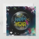 Feliz año nuevo elegante tarjeta negra neón