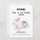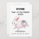 Este año de la tarjeta de conejo dice "¡Feliz Año Nuevo!" en chino y tiene un conejo que tiene la palabra china que significa "conejo" escrito en su bulto y los años anteriores de este cartel de zodiaco escrito debajo para referencia. Escribe tu mensaje personalizado o encabezado en la parte posterior de esta tarjeta para enviar saludos de año nuevo para el Año Nuevo lunar que es el 22 de enero de 2023.