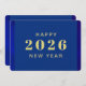 Tarjeta navideña feliz de Año Nuevo con colores azules con texto dorado. Ideal para los que buscan tarjetas de vacaciones para celebrar el año nuevo. Bonitos colores azules. texto personalizado en la parte delantera y trasera de la tarjeta. Añade tu saludo personal al dorso. Utilice la plantilla para crear su propia tarjeta de felicitación de personalizado Feliz Año Nuevo.