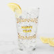 Vidrio elegante con texto de Año Feliz y confeti dorado. El texto se puede personalizar. ¡Feliz Año Nuevo 2019, 2020 y todos los años siguientes!