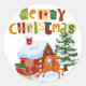 Feliz ciervo navideño y pegatinas de trineo