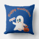 Feliz Cojín decorativo de Halloween con un fantasma lindo diciendo "¡Trick o Tremendo!"