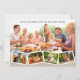 Tarjeta de Navidades de Collage de fotos familiar. Añade 5 de tus fotos favoritas a esta moderna tarjeta de vacaciones. Tus fotos serán dispuestas como una foto principal de un paisaje, con una tira de fotos en zigzag de cuatro paisajes más pequeños. También puede agregar su mensaje personalizado, como "Feliz Navidad de [tu apellido]", que está impreso en texto de máquina de escribir a la moda. El dorso de la carta es un beige de setas cálido con la mano "Feliz Navidad" con letras en caligrafía ornamental.