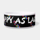 Cuencos de mascota de color negro con el logo de Larry —