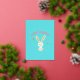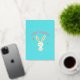 Pink Happy Easter texto con conejito blanco sobre diseño de fondo azul.