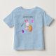 Colorido conejo de Pascua y camiseta de niños con huevos a rayas con nombre personalizado.