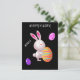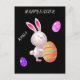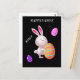 Colorida postal de conejo de Pascua y huevos a rayas con un nombre personalizado.