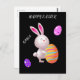 Feliz conejo de Pascua y postal de huevo a rayas.