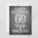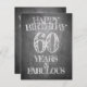 Feliz cumpleaños - 60 años y fabuloso en el aspecto de pizarra. El año, el texto y el nombre se pueden cambiar.