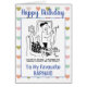 Personalizado de camarera. El marido dice que prometió a la camarera que no llegaría tarde. Personalice con su elección de texto y mensaje interno. Tarjeta de cumpleaños para una camarera de pub.