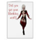 Tarjeta del feliz cumpleaños con mujeres rubias sensuales en ropa interior roja con la ropa interior roja, las medias rojas y el sujetador rojo también llevando botas de alto de rodilla negras. Esta imagen disponible en muchos productos en mi tienda o me entra en contacto con