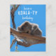 Desea un feliz cumpleaños a tu mejor amigo con esta divertida y humorística tarjeta con fotos de un koala lindo durmiendo en un árbol de eucalipto. La parte delantera de la tarjeta tiene la frase "ten un cumpleaños de koala-tidad (calidad)". La parte trasera dice "Espero que tengas un día relajante" refiriéndose a lo que los koalas hacen mejor ;) Personaliza / adapta el texto en la parte trasera a tu gusto para perfeccionar aún más esta tarjeta. ¡A todos les encantará recibir esta tarjeta! Las fotos fueron tomadas durante mi visita al Parque Nacional Otways, en Victoria, Australia, un destino turístico popular en Down Under.