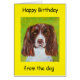 Pintura del lindo espátulo de Springer con borde amarillo y el mensaje "Feliz cumpleaños del perro".