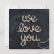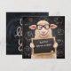 Feliz cumpleaños divertida tarjeta de felicitación plana de oveja. El artista ha dejado un pequeño espacio en la pizarra para que el destinatario escriba un mensaje personalizado o nombre. “Te queremos” está escrito con lana en la parte posterior de la tarjeta.
