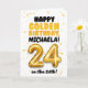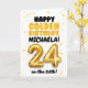 ¡Celebra cumplir 24 años el día 24 con esta tarjeta de Feliz Cumpleaños Dorado! Diseñada con un tema dorado brillante y alegre, esta tarjeta presenta un diseño divertido y audaz con detalles de confeti y un gran número de globo dorado. ¡Personalízala con un nombre en la parte delantera y en el interior de la tarjeta para hacer su cumpleaños dorado aún más especial!