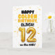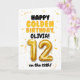 ¡Celebra que tu hijo cumple 12 años el día 12 con esta tarjeta de Feliz Cumpleaños Dorado! Diseñada con un tema dorado brillante y alegre, esta tarjeta presenta un diseño divertido y audaz con detalles de confeti y un gran número de globo dorado. ¡Personalízala con un nombre en la parte delantera y en el interior de la tarjeta para hacer su cumpleaños dorado aún más especial!