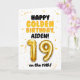 ¡Celebra cumpliendo 19 años el día 19 con esta tarjeta de Feliz Cumpleaños Dorado! Diseñada con un tema dorado brillante y alegre, esta tarjeta presenta un diseño divertido y atrevido con detalles de confeti y un gran número de globo dorado. ¡Personalízala con un nombre en la parte frontal y en el interior de la tarjeta para hacer que su cumpleaños dorado sea aún más especial!